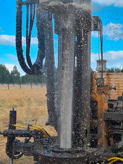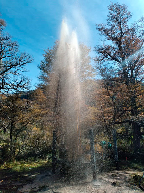 Realizamos todas las etapas en la construcción de pozos profundos, dando especial cuidado al desarrollo y limpieza de la perforación. Se perfora, dependiendo de la geología de cada sector, mediante rotación o rotopercusión con diámetros que parten desde las 5 pulgadas.